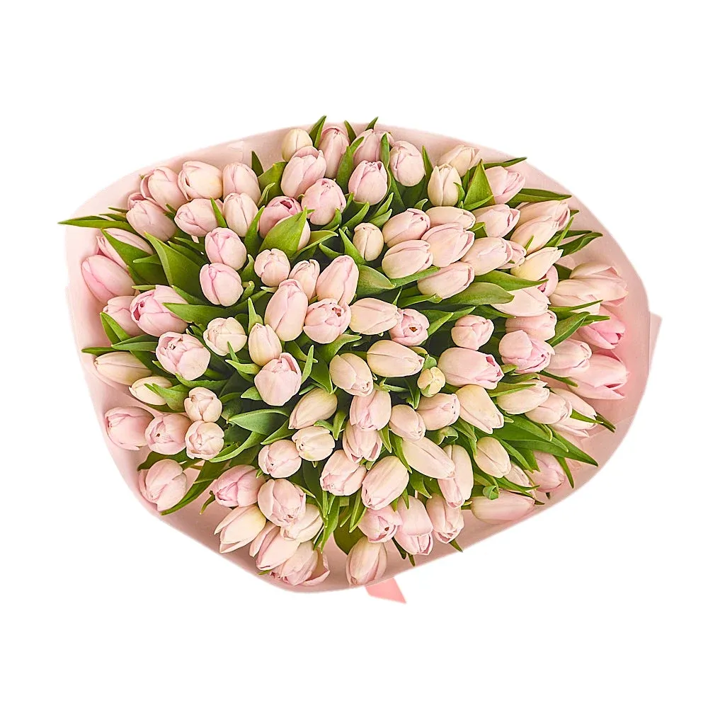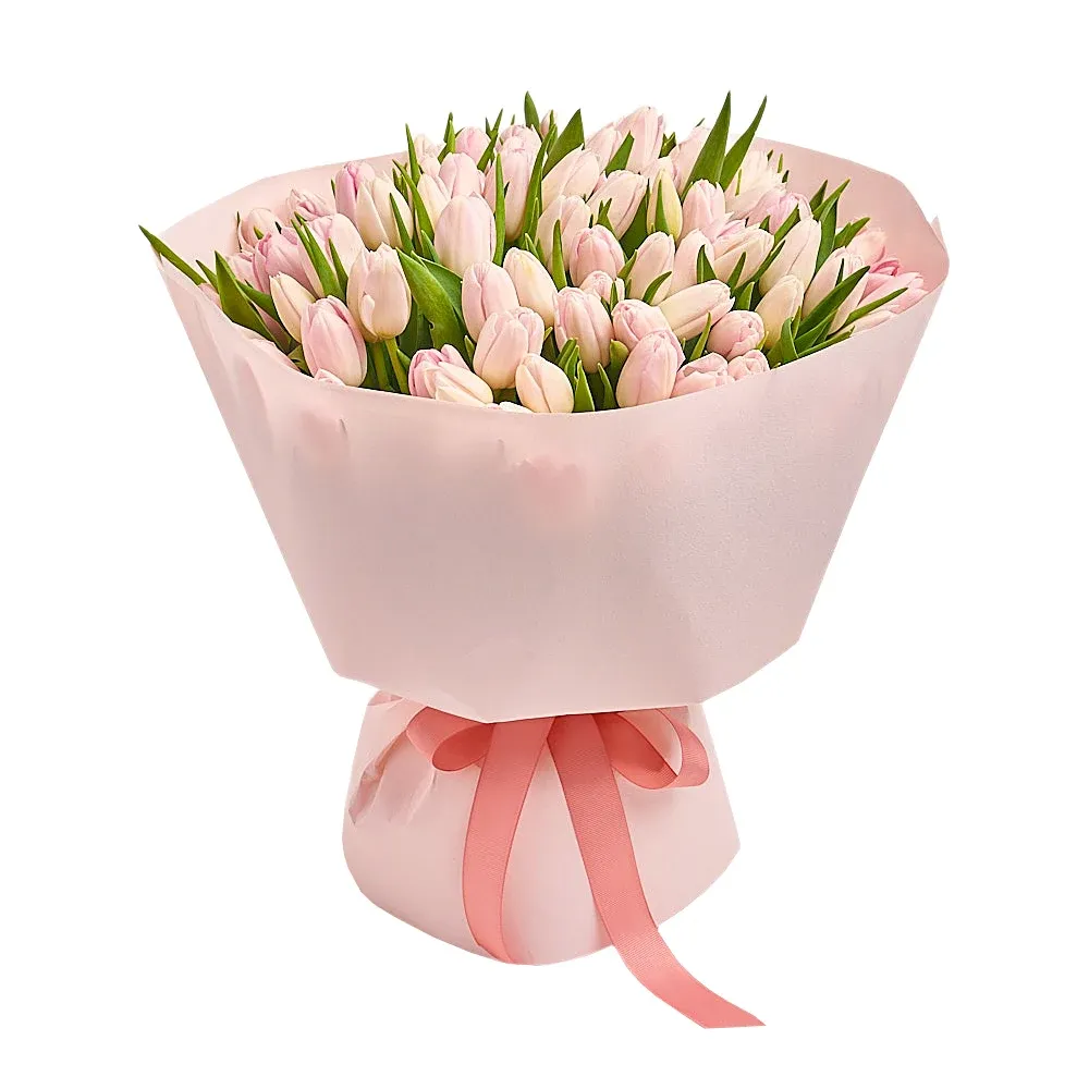 Тюльпан светло-розовый, дизайнерская упаковка.