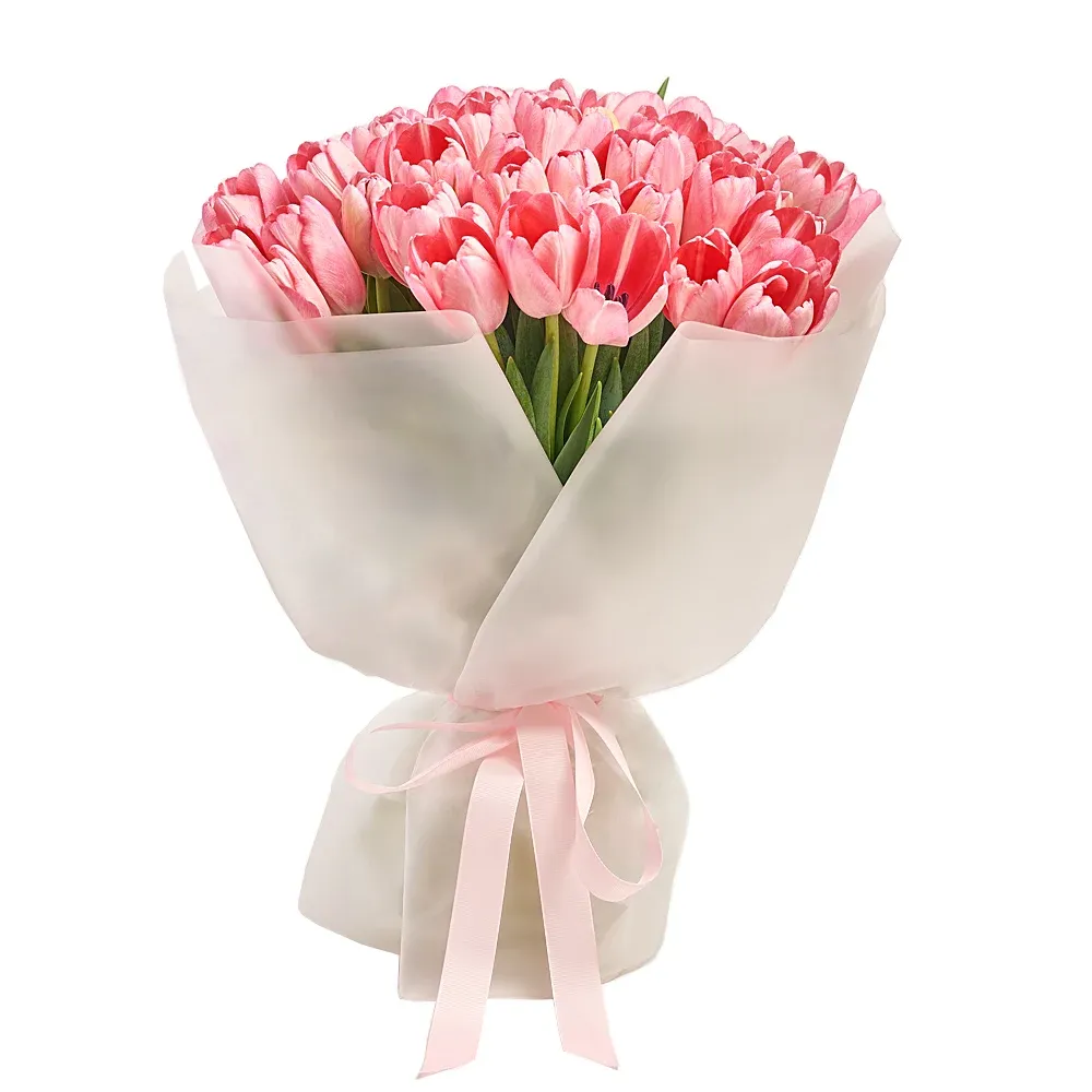Букет просто волшебный! Розовые тюльпаны были нежнейшего оттенка, свежие и очень долго стояли. Получила море восторженных комплиментов от того, кому дарила.