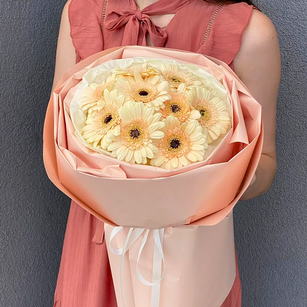 Кремовая гербера, дизайнерская упаковка.