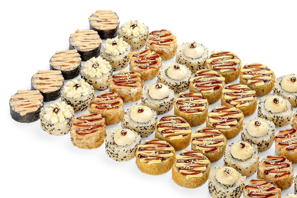 Ролл Кимпаб с тунцом, Ролл Острая курочка, Ролл Брут, Ролл Сырный кунжут, Ролл Унаги темпура